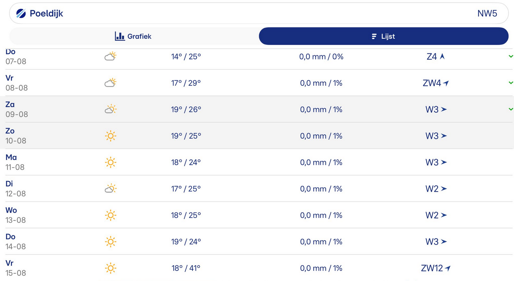 Weerwebsite Buienradar zorgde dit weekend voor veel verwarring met zijn veertiendaagse weersvoorspelling. Buienradar voorspelde zaterdag voor vrijdag 15 augustus lokaal 41 graden, maar heeft inmiddels bevestigd dat sprake is van een misverstand.
