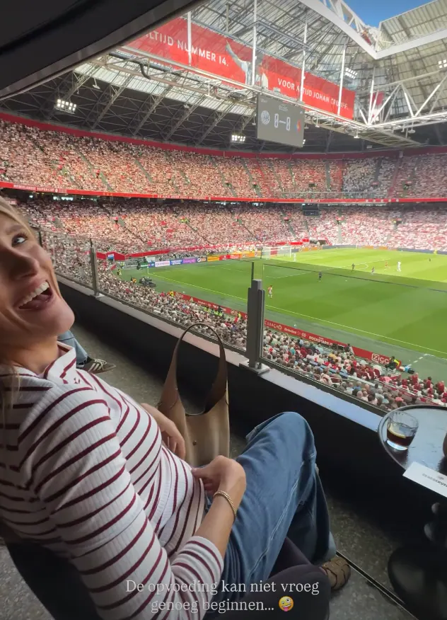 “De opvoeding kan niet vroeg genoeg beginnen 🤪”, schreef Freek bij een video waarop te zien is dat hij zijn zwangere vrouw filmt tijdens de wedstrijd. Het kindje wordt aan het eind van het jaar verwacht.