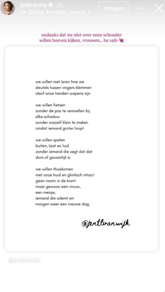 Jade Anna deelt op Instagram Stories de volgende afbeelding: