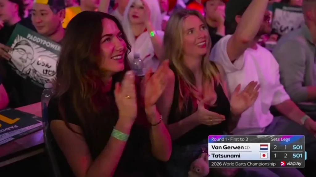Van Gerwen zelf pronkte na afloop van de wedstrijd tegen Tatsunami met de aanwezigheid van Valkering en Stapel. “Nou, als je mijn nieuwe dates vanavond hier hebt gezien, denk ik niet dat er iets mis met mijn ogen is”, antwoordde hij lachend bij Viaplay toen hij door een verslaggever werd geconfronteerd met de kritiek van collega-darter Peter Wright dat zijn zicht achteruit zou zijn gegaan.