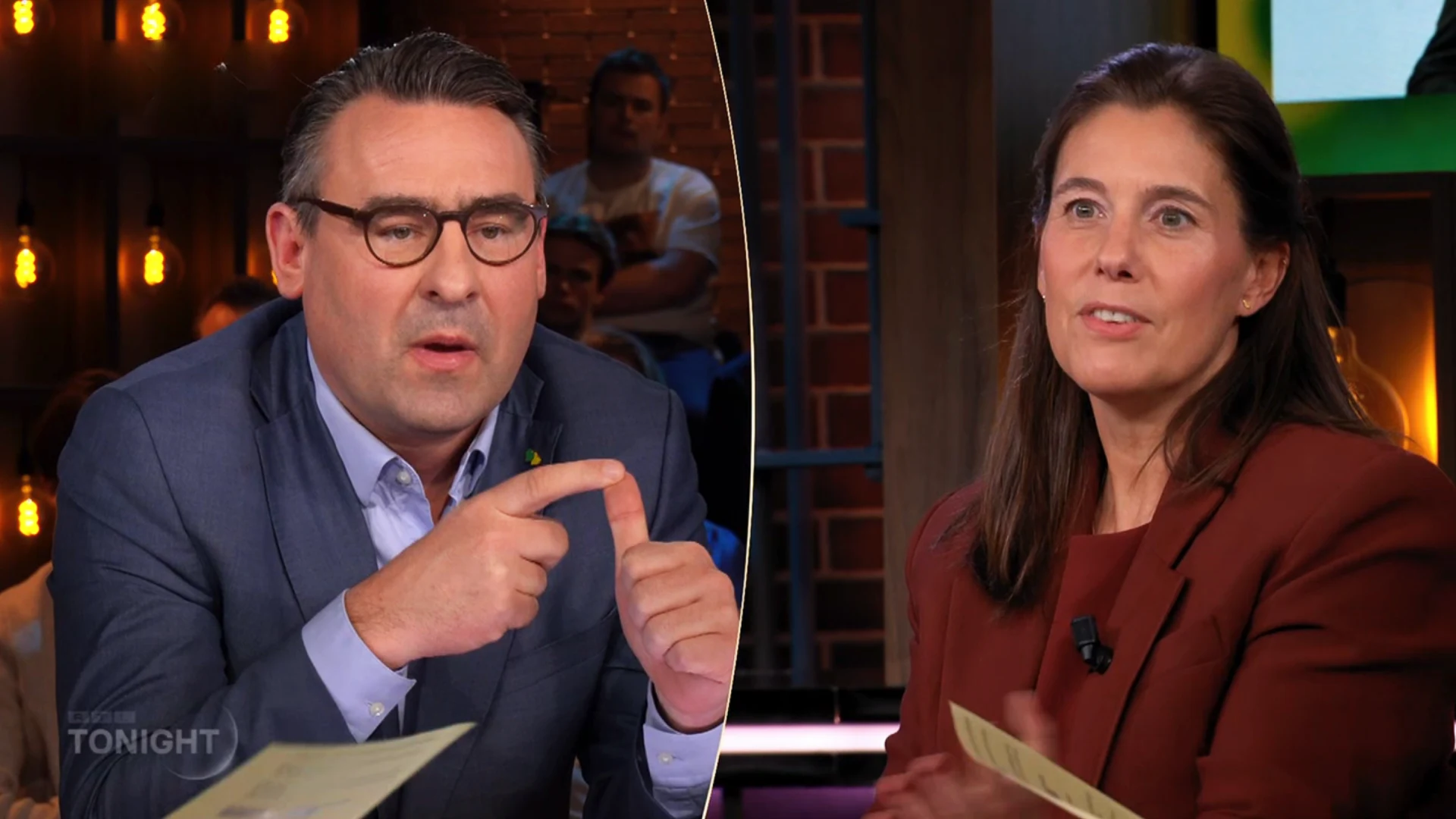 “Richard de Mos praat rustig door en Floor Bremer gaat steeds harder praten,” schrijft een kijker. “Baas,” voegt hij eraan toe, verwijzend naar De Mos.