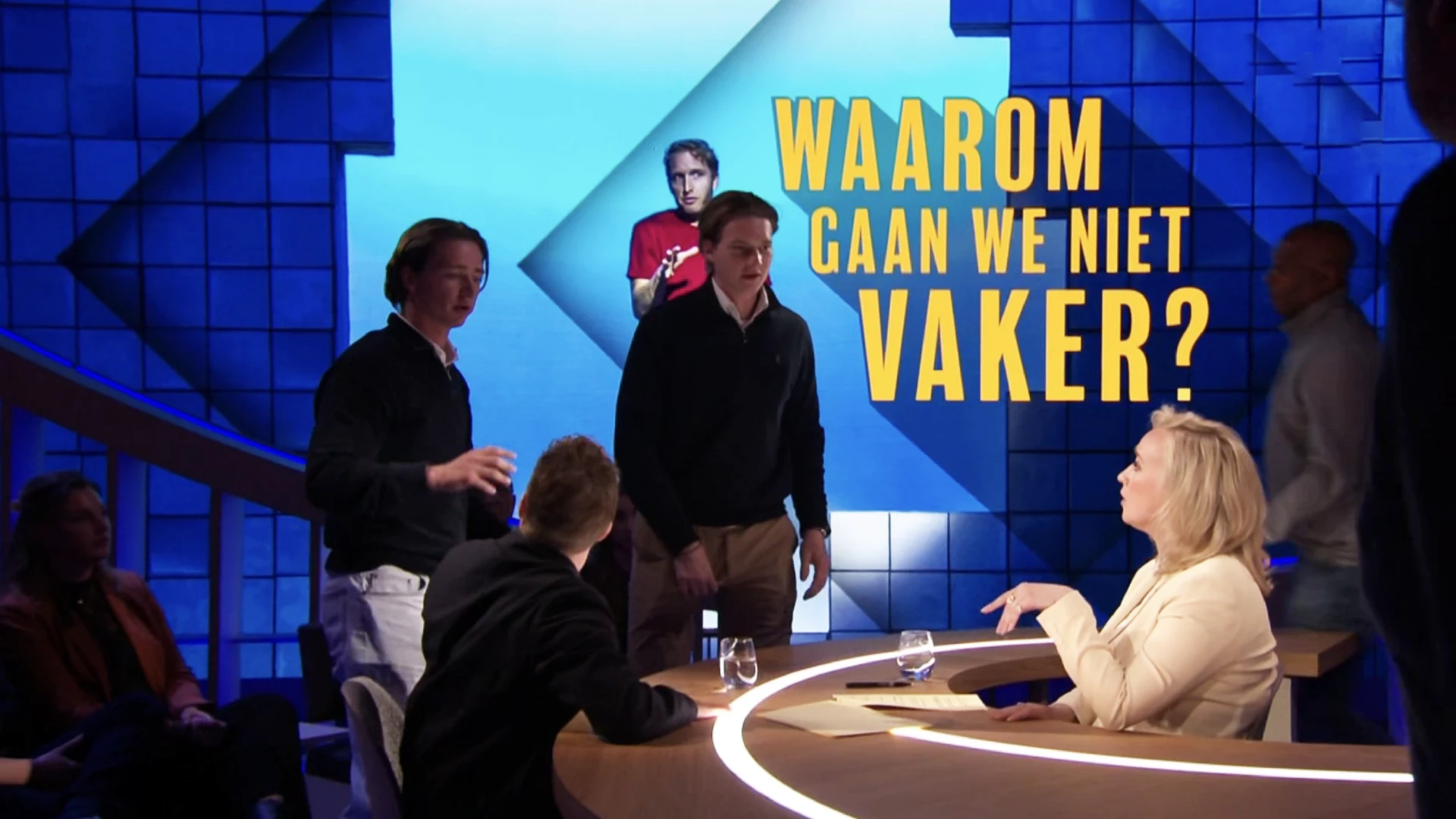 Pannekoek was te gast om te praten over decors, toen de twee jongens het gesprek abrupt verstoorden. Ze liepen zichtbaar studentikoos gekleed de set op en richtten zich tot de presentatrice en haar gast. āSorry dat we jullie heel even storen. Waar kunnen we hier ergens een drankje bestellen?ā, vroegen ze.