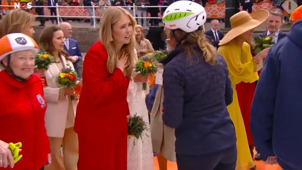De NOS ving een gesprek op tussen Amalia en iemand langs de schaatsbaan. Amalia sloeg schuldbewust haar rechterhand op het hart en deed een opmerkelijke onthulling.