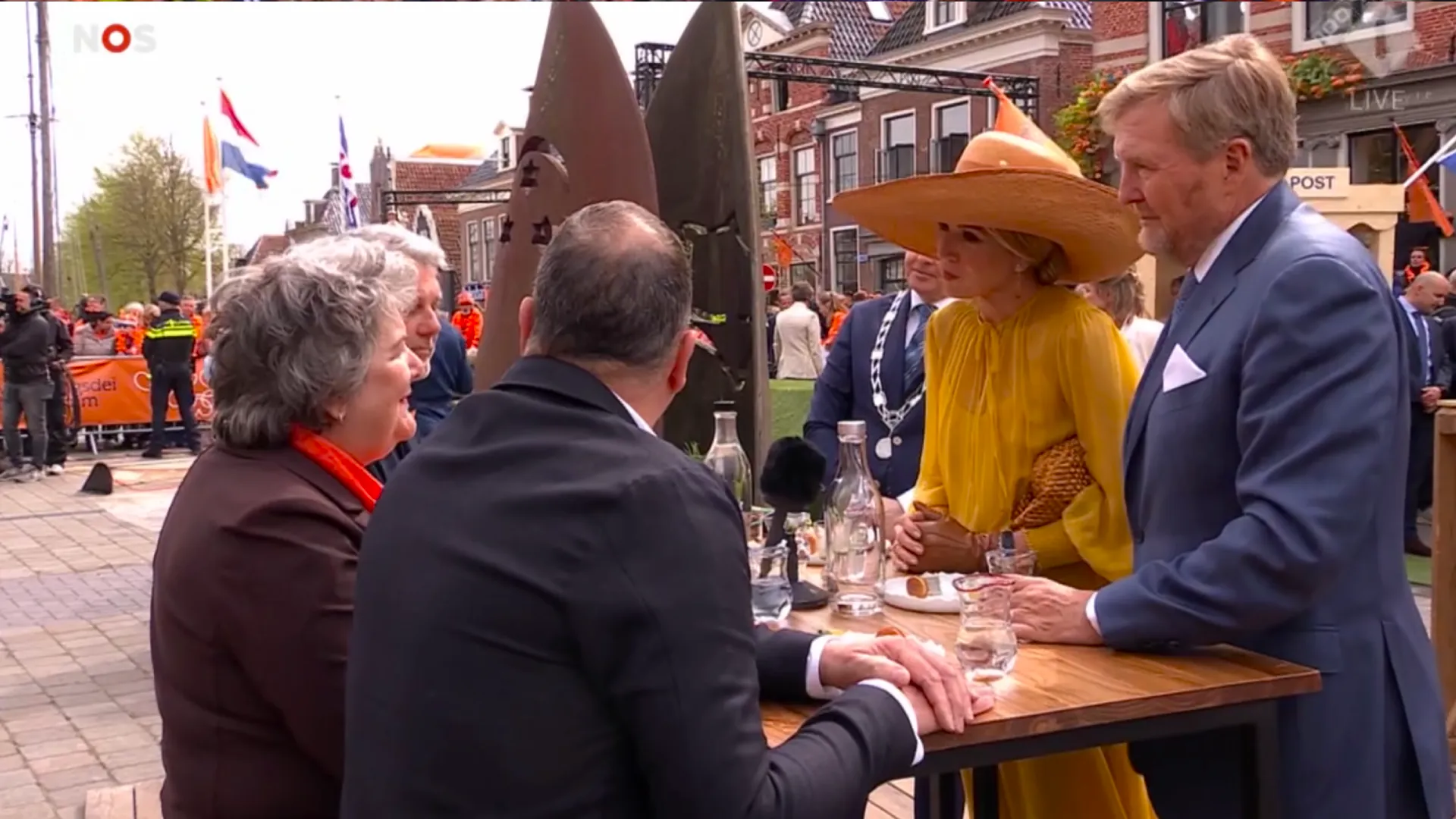 Vlak na de speech van Kramer werd het Friese volkslied afgespeeld. Daarbij viel op dat Máxima het als enige van de koninklijke familie niet droog hield en een traantje moest wegpinken.